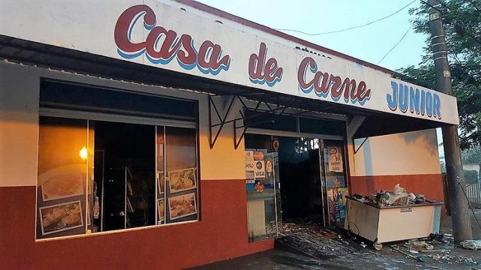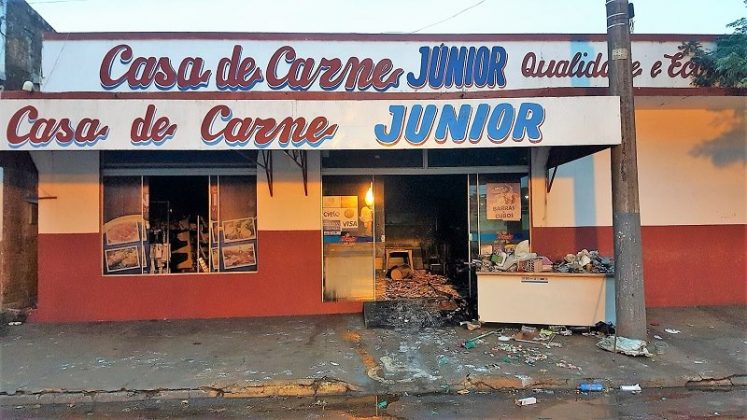 MUNDO NOVO (MS) – Na madrugada deste sábado (26), por volta das 4h:00, elementos invadiram o alojamento de um funcionário do estabelecimento comercial conhecido como Casa de Carnes Junior, localizado na Avenida Campo Grande – Bairro Tapajós. Armados, os indivíduos dominaram o funcionário que se banhava naquele momento, obrigando-o a abrir o estabelecimento, para em ato contínuo, incendiar o local. Com as chamas, houve praticamente a perda total dos produtos. Graças a intervenção do Corpo de Bombeiros, a estrutura da propriedade foi preservada.